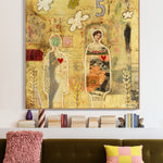 Stretched canvases are mounted over high-quality timber stretcher bars and arrive with hanging wire pre-installed — simply unbox and hang.