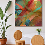 The artwork is stretched over 1.5" timber stretcher bars for a clean, modern finish. Comes ready to hang, complete with wire installed on the back.