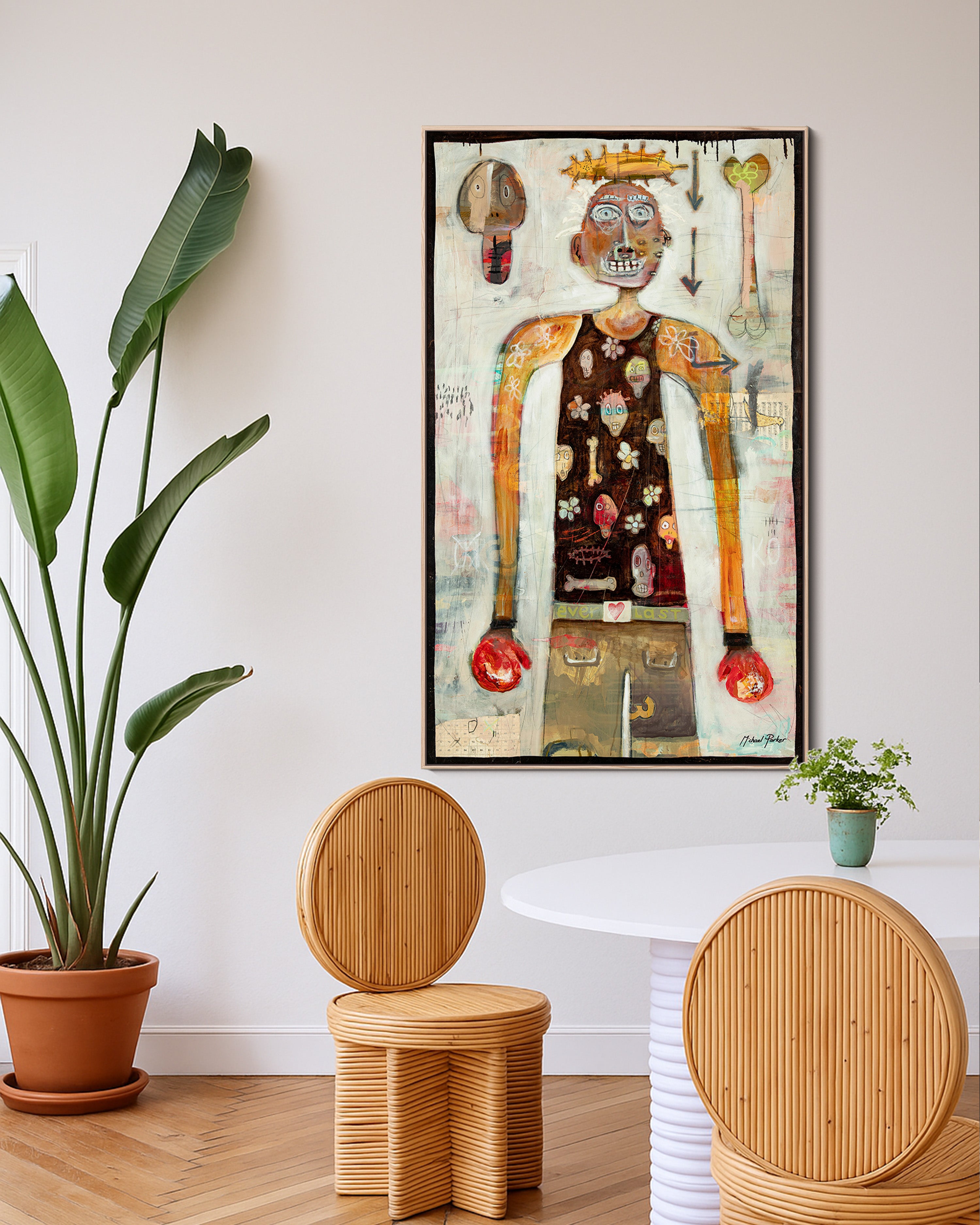 The Homage to Basquiat Collection celebrates the raw energy, symbolic language, and social commentary found in Jean-Michel Basquiat’s work. These paintings pay tribute through their use of bold linework, layered mark-making, and repeated motifs — while also bringing something personal and new. They speak to resistance, identity, and the power of visual language. While they nod to Basquiat’s legacy, they’re not imitations — they’re love letters. Made in admiration, but also in conversation. A reminder that great art doesn’t ask for permission. It claims space. It speaks back.