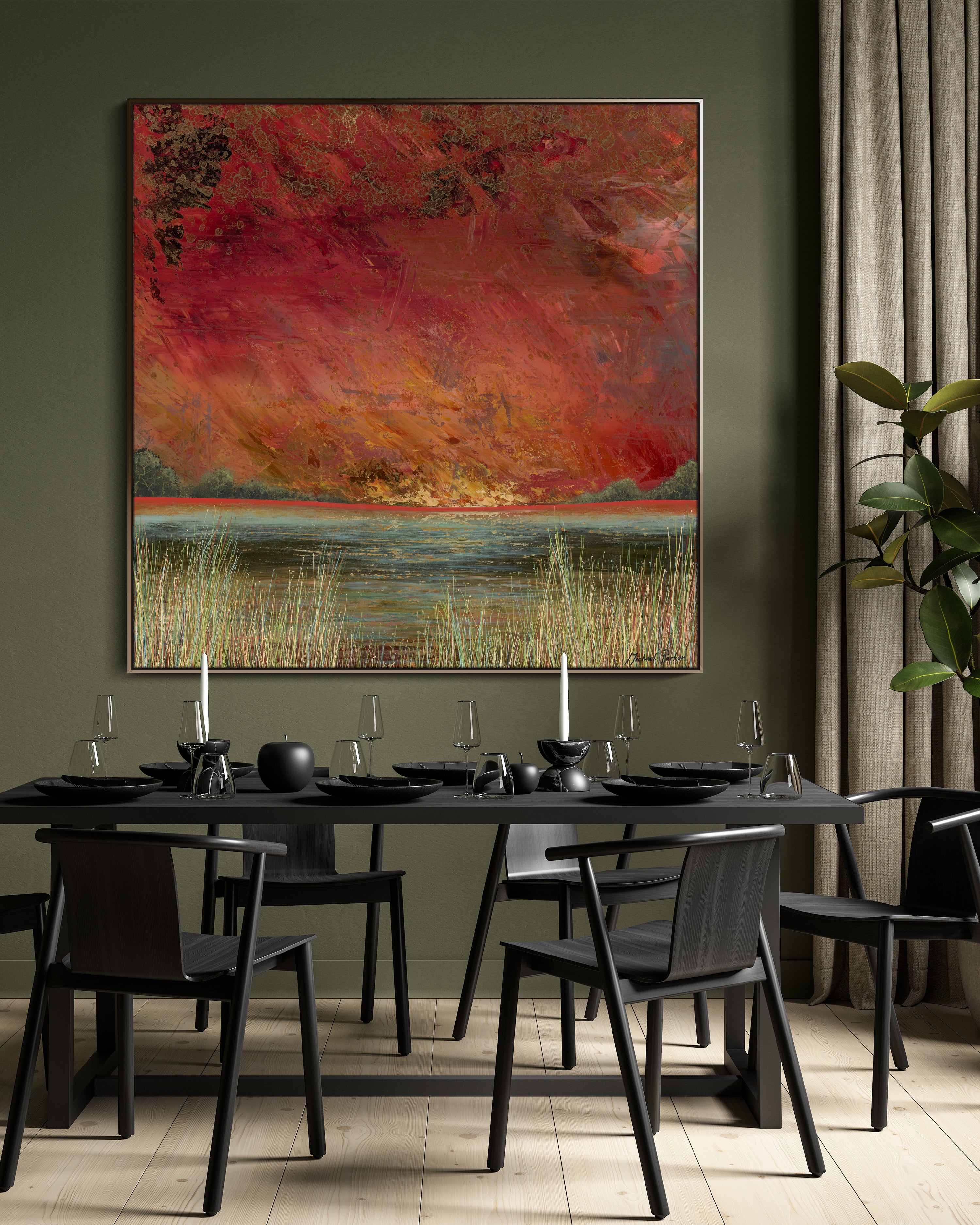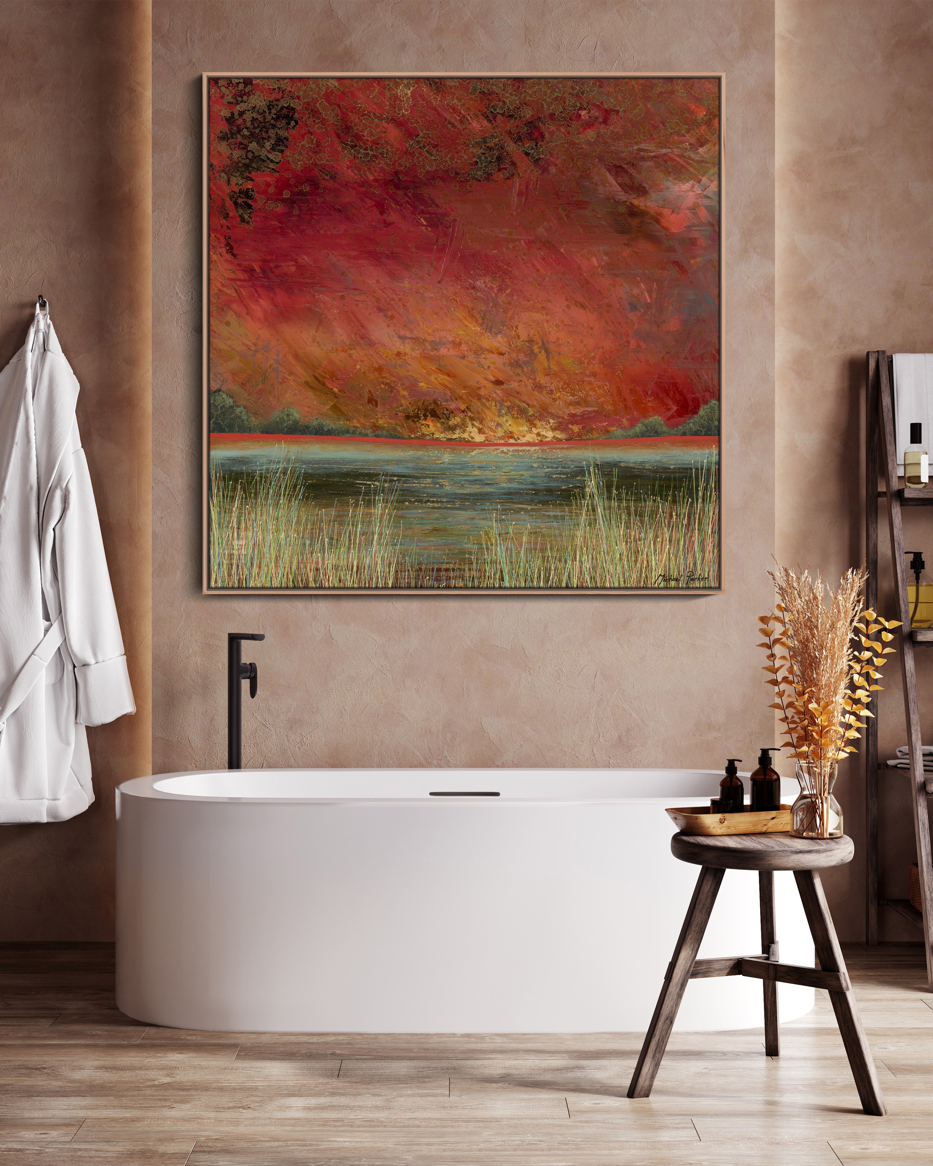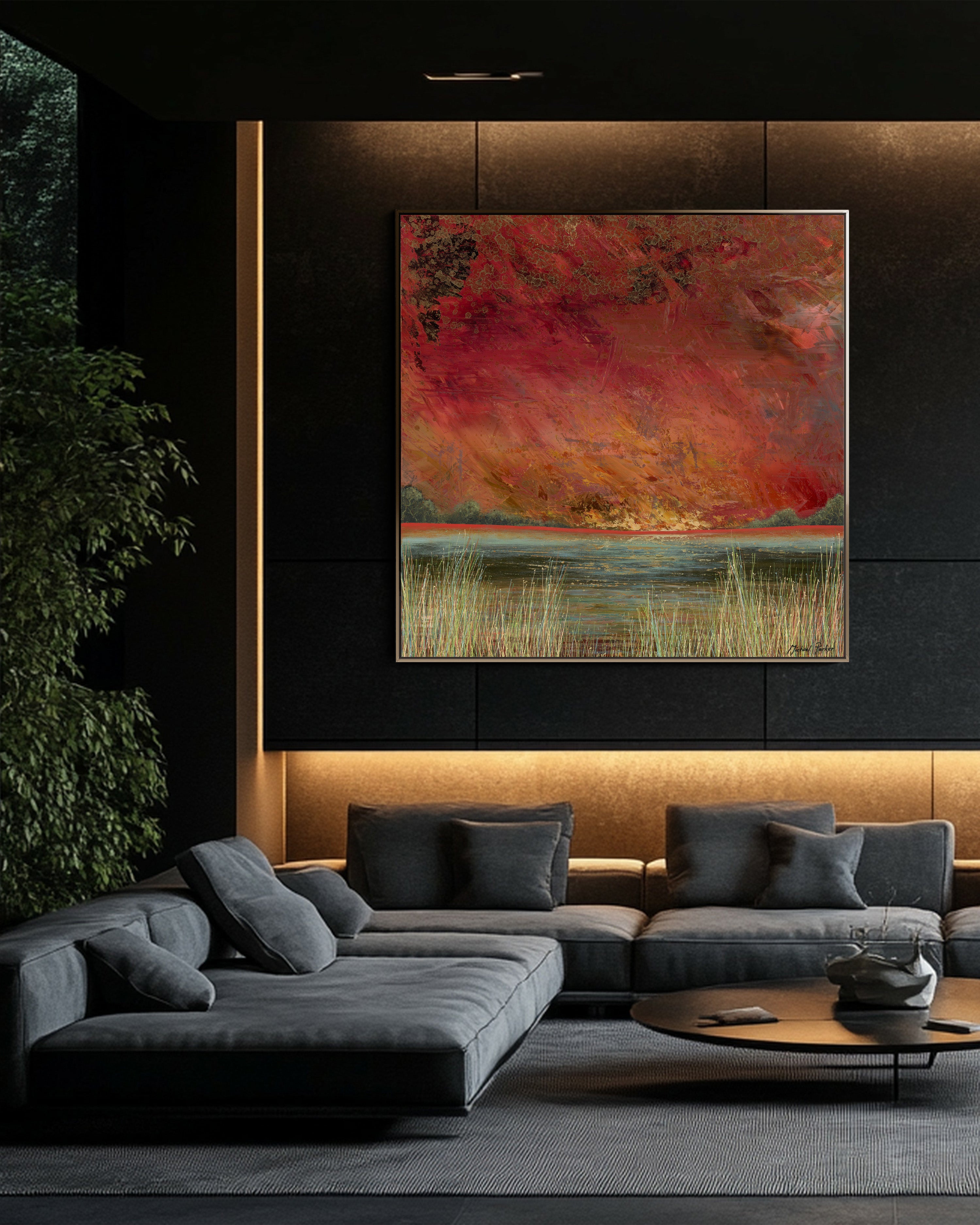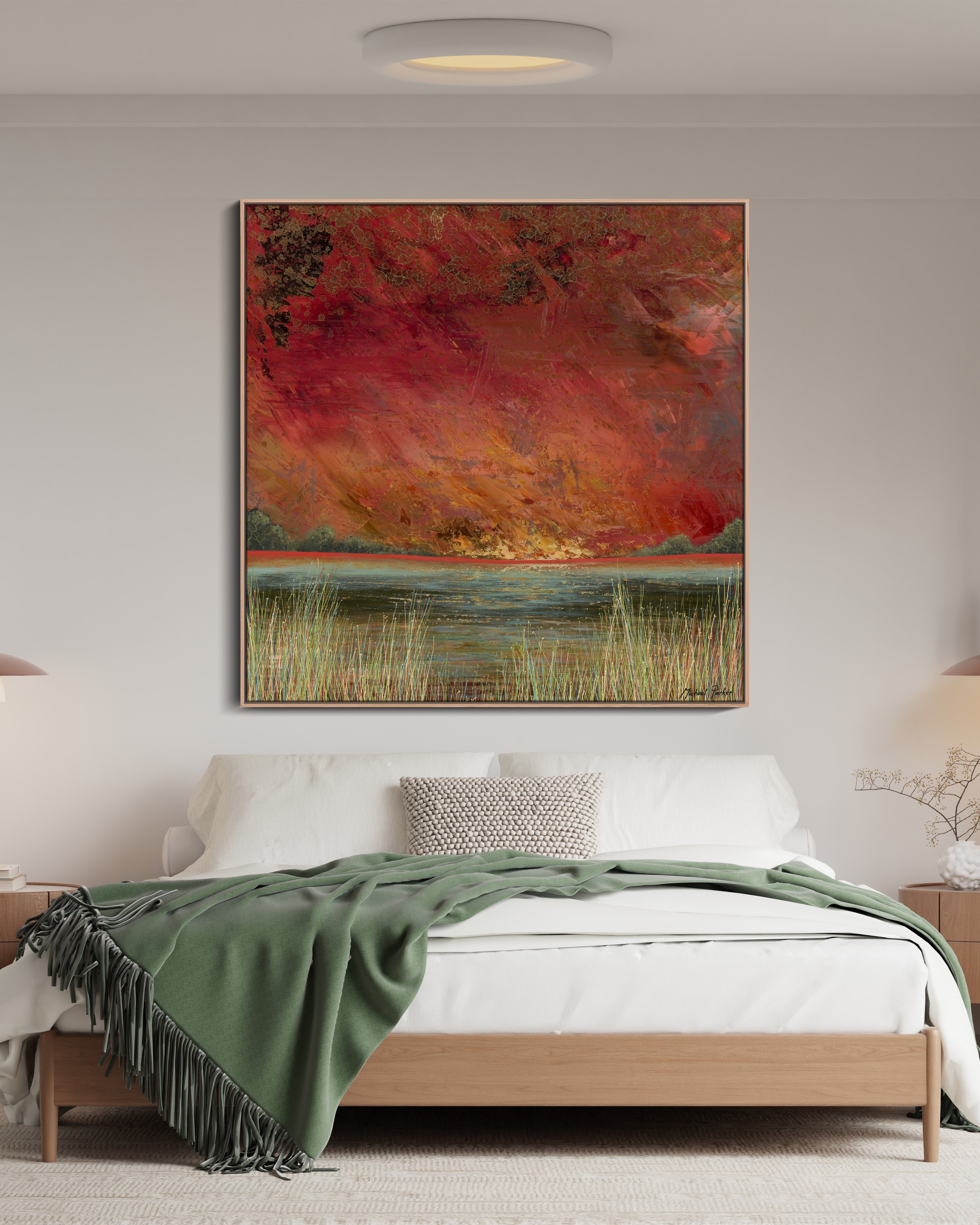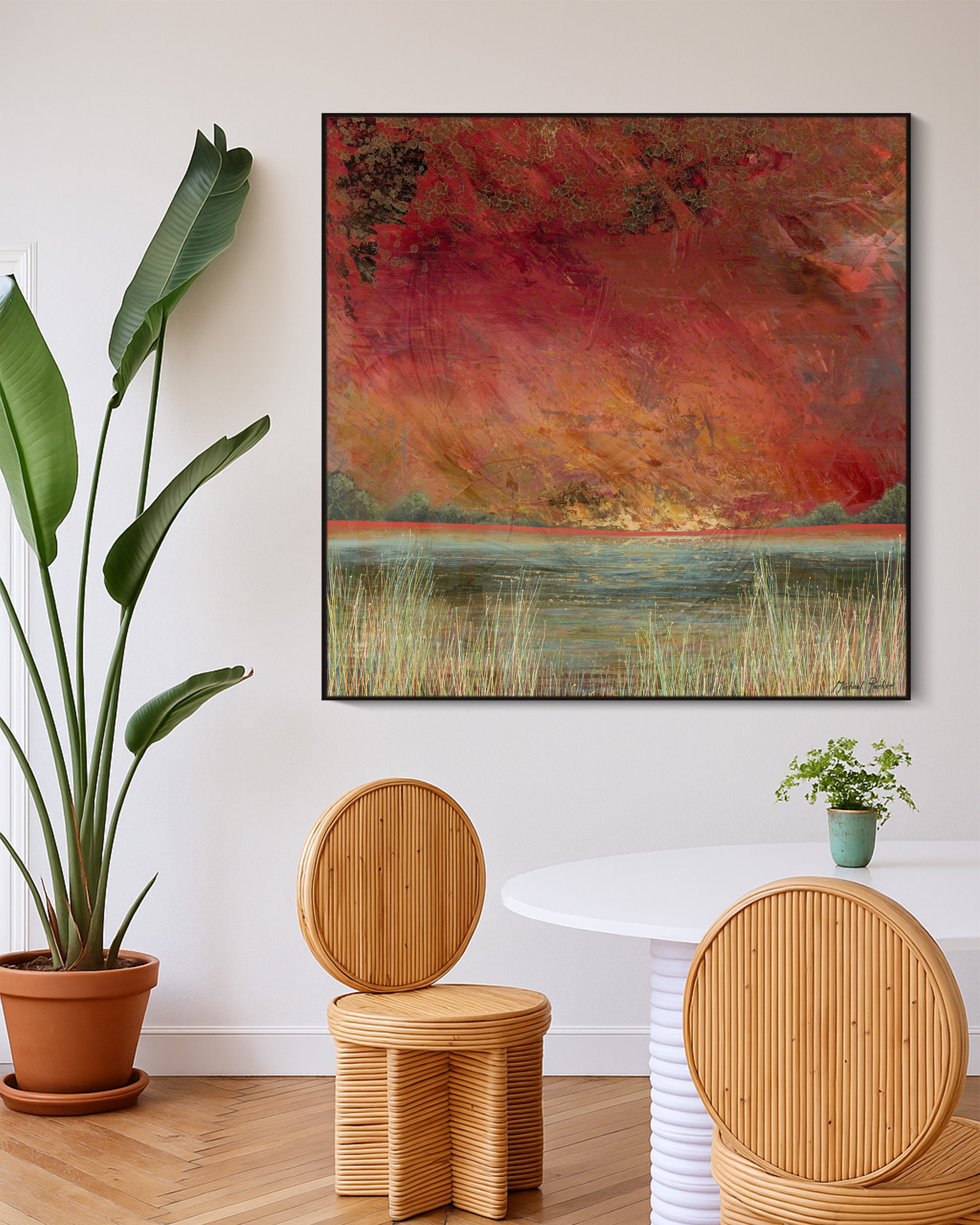 A Sky Worth Remembering captures a moment of quiet reflection a place where the land meets water under a sky brushed with memory and light. The soft reeds in the foreground lead the eye toward still waters, while the richly layered sky evokes a sense of calm wonder. This work invites the viewer to pause, to breathe, and to recall the skies that have stayed with them, not for their drama, but for their quiet beauty. It is a landscape of feeling as much as place, a gentle tribute to the power of presence.