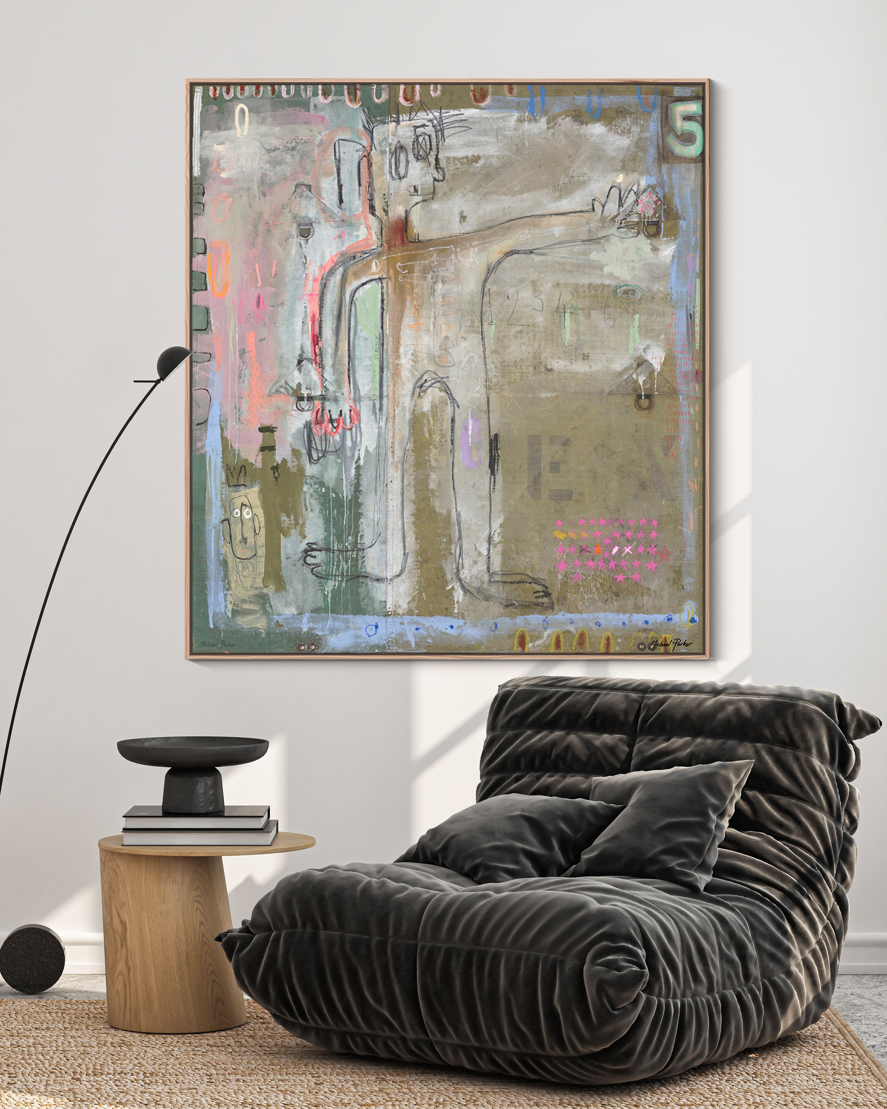 Painted on reclaimed truck tarps, each piece in the Woven Collection carries the physical history of the material itself — patched, stitched, weather-worn, and full of quiet stories. These surfaces have been mended through labour and time, then layered with paint and meaning. Threads of memory, repair, and resilience run through each composition. Just like the tarps, the paintings hold traces of journeys taken — both personal and collective. The collection explores how we carry, patch, and rework our stories. What’s frayed can still be beautiful. What’s worn can still hold strength.