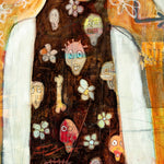 Many of Michael’s works are also available as hand-embellished prints — reworked by the artist with brushstrokes, collage, resin, or even vintage stamps. Each one is completely unique and available by request only.