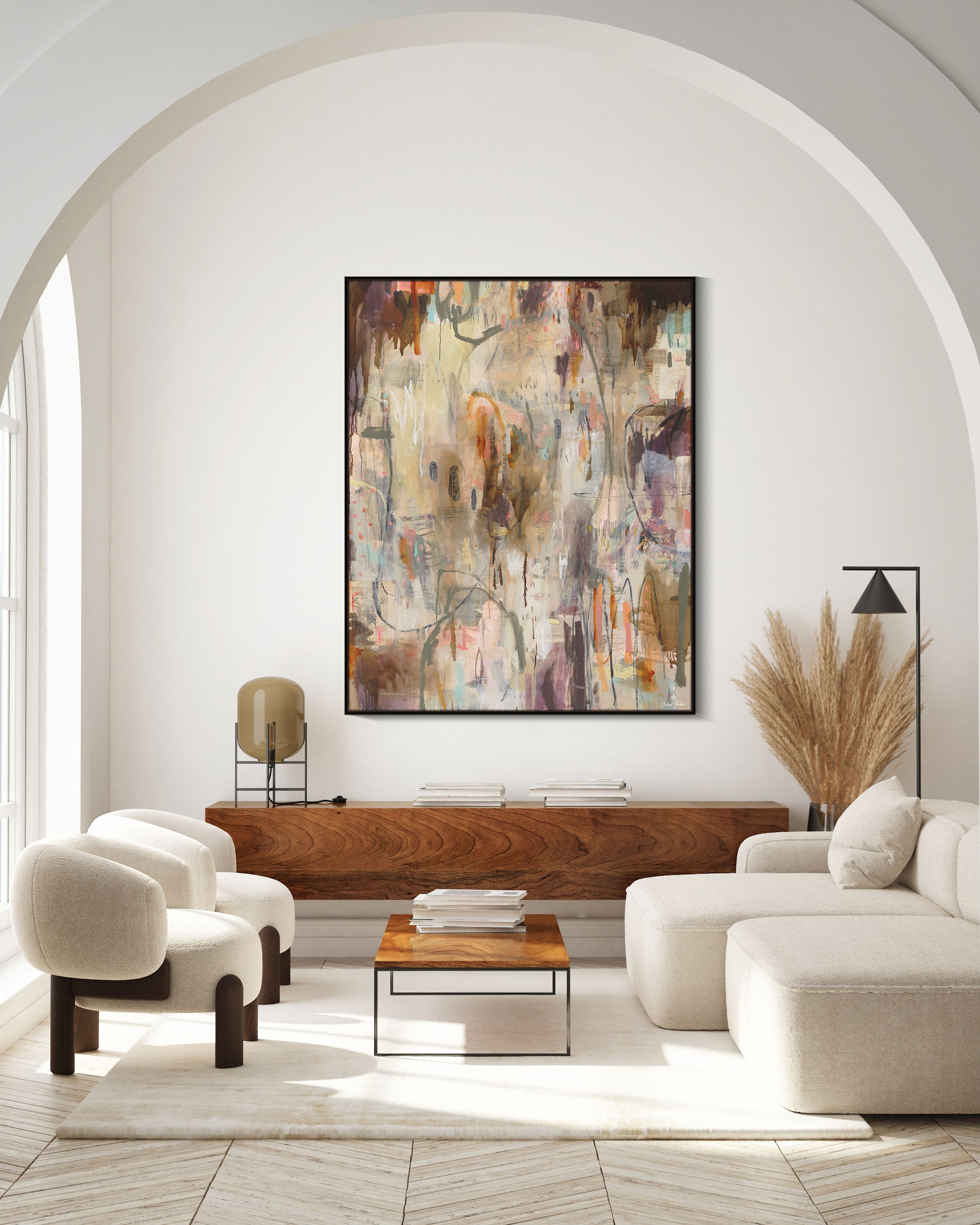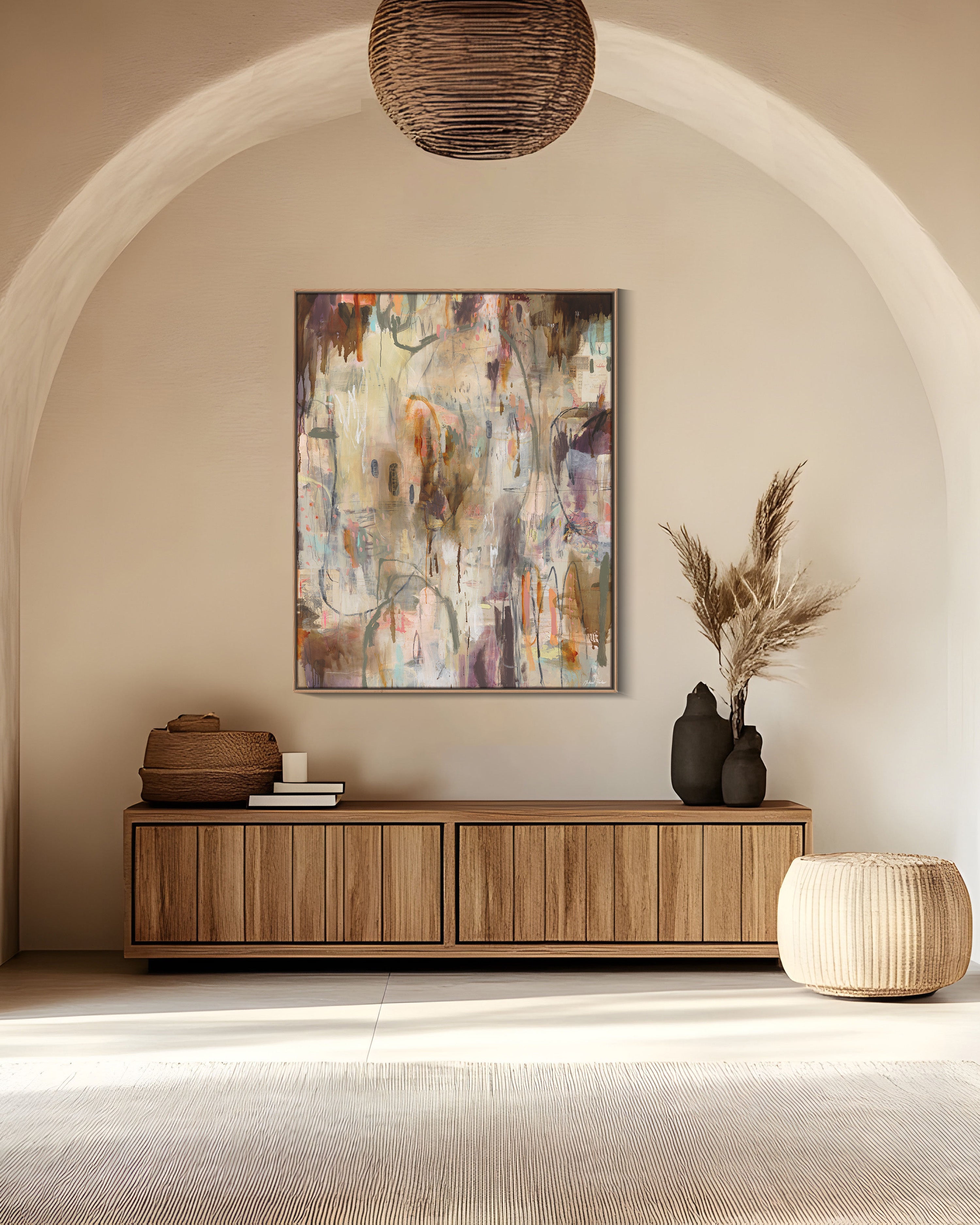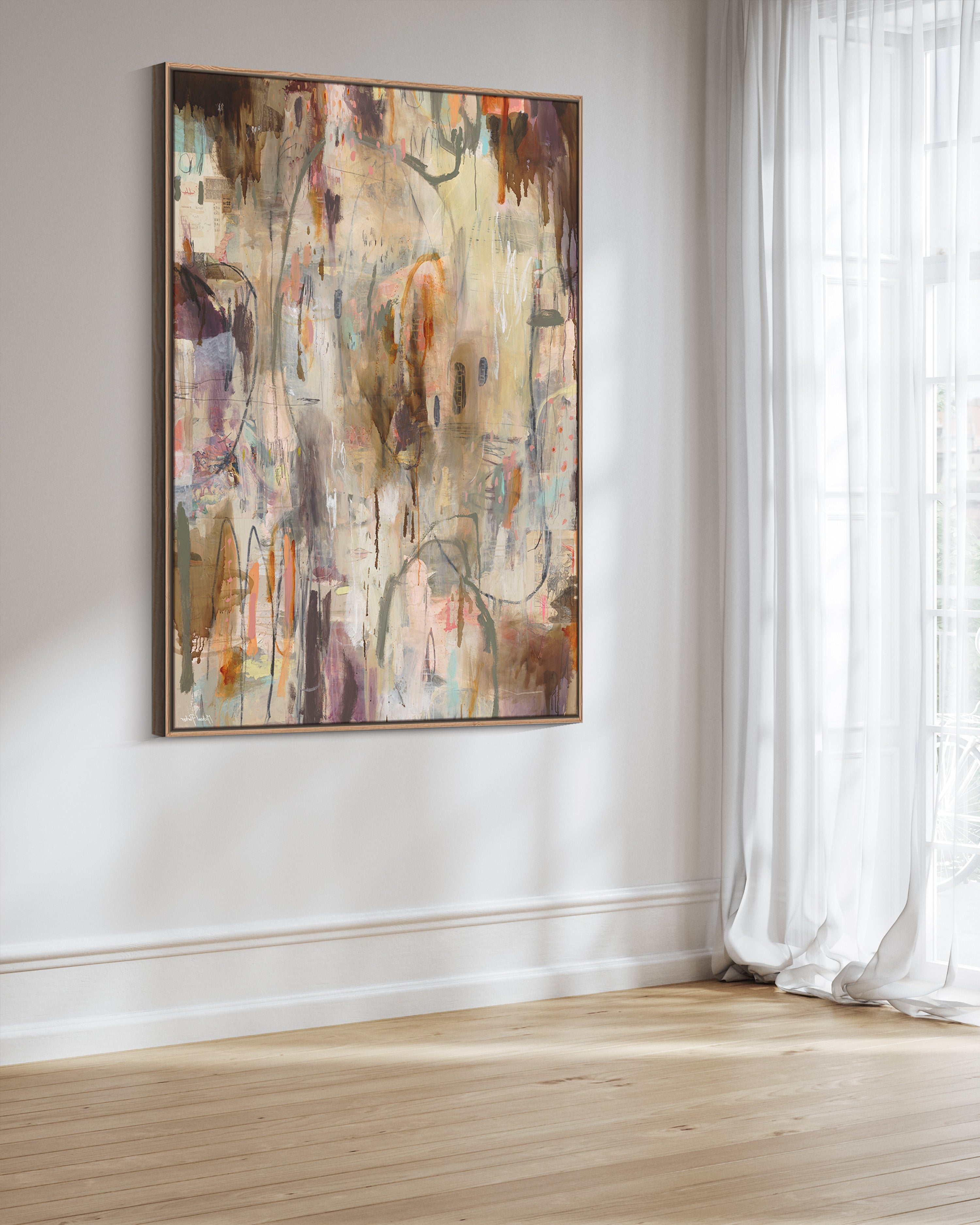 The artwork is stretched over 1.5" timber stretcher bars for a clean, modern finish. Comes ready to hang, complete with wire installed on the back.