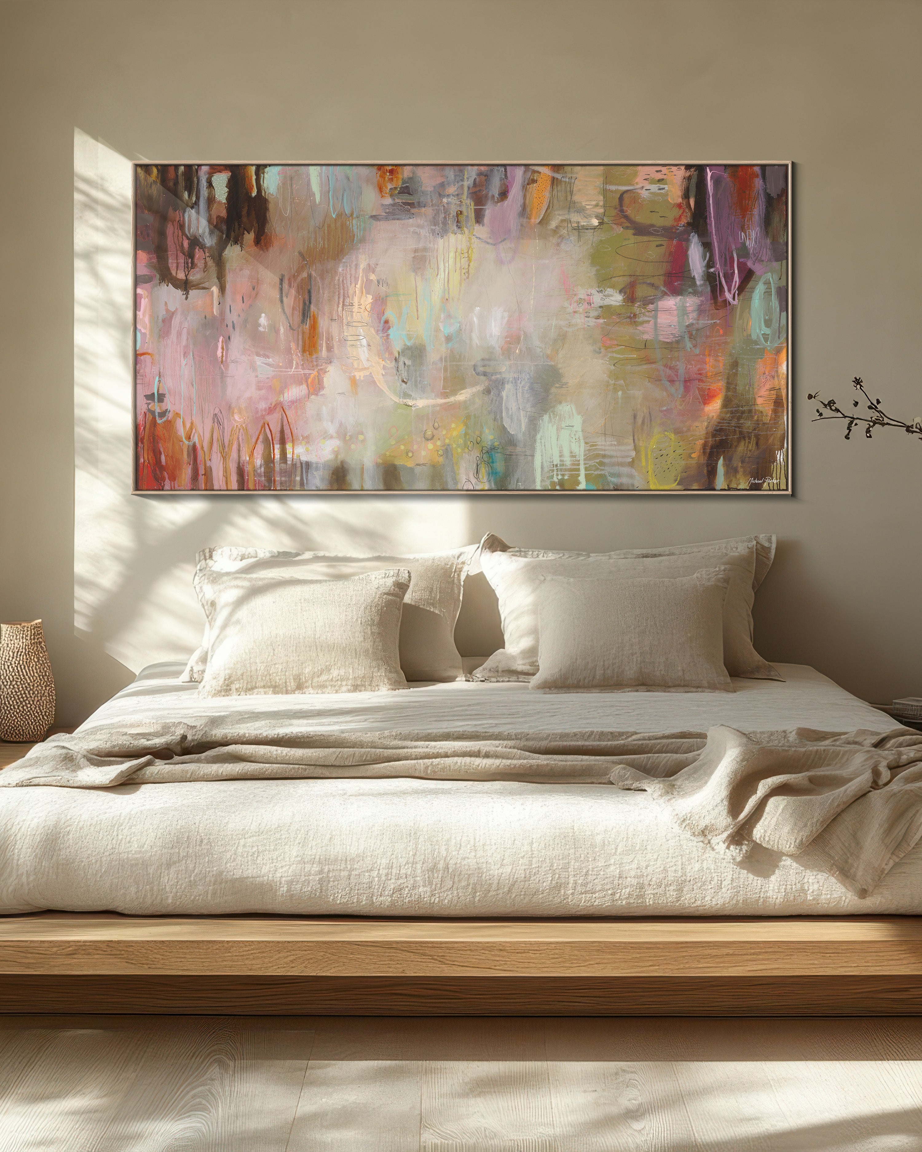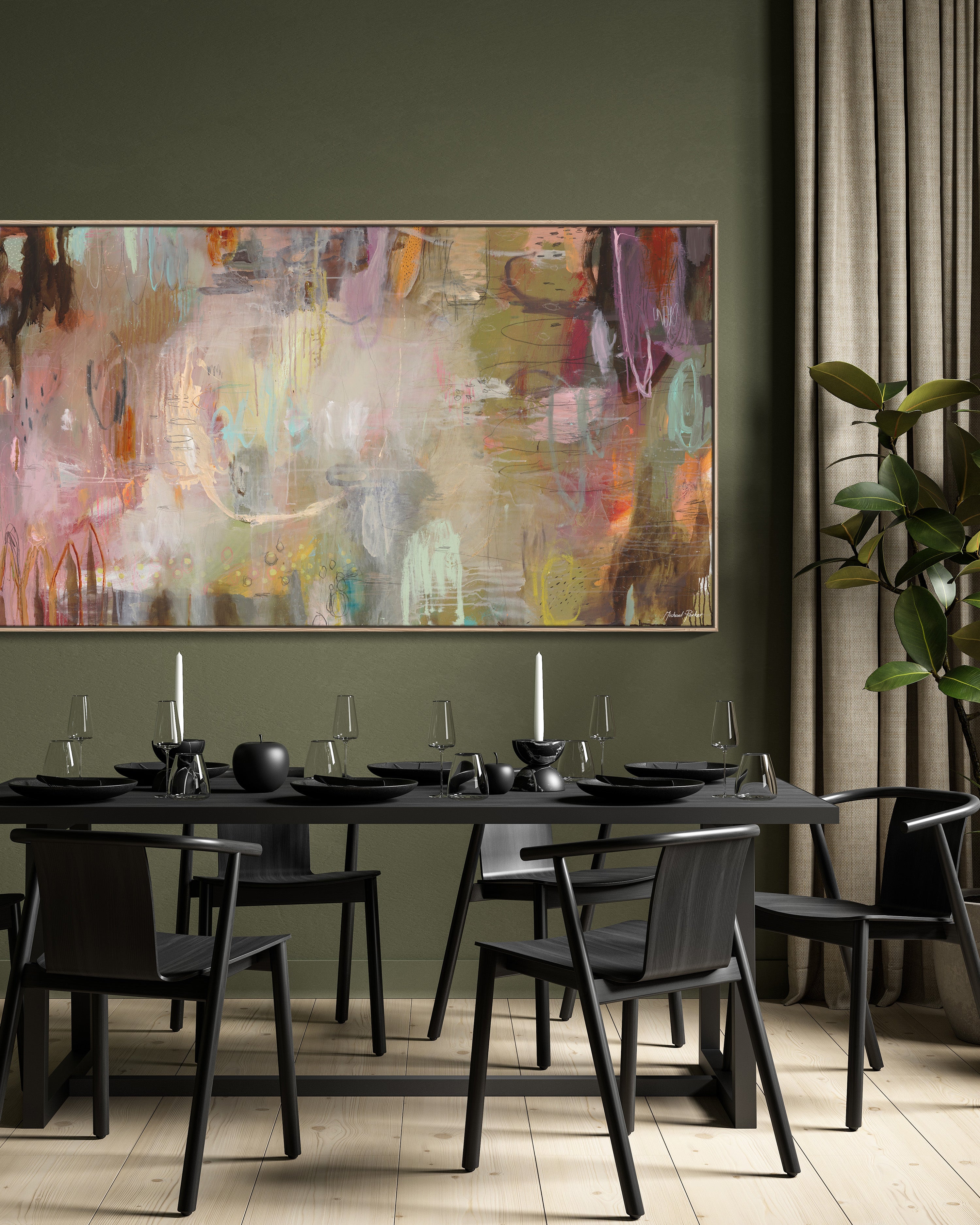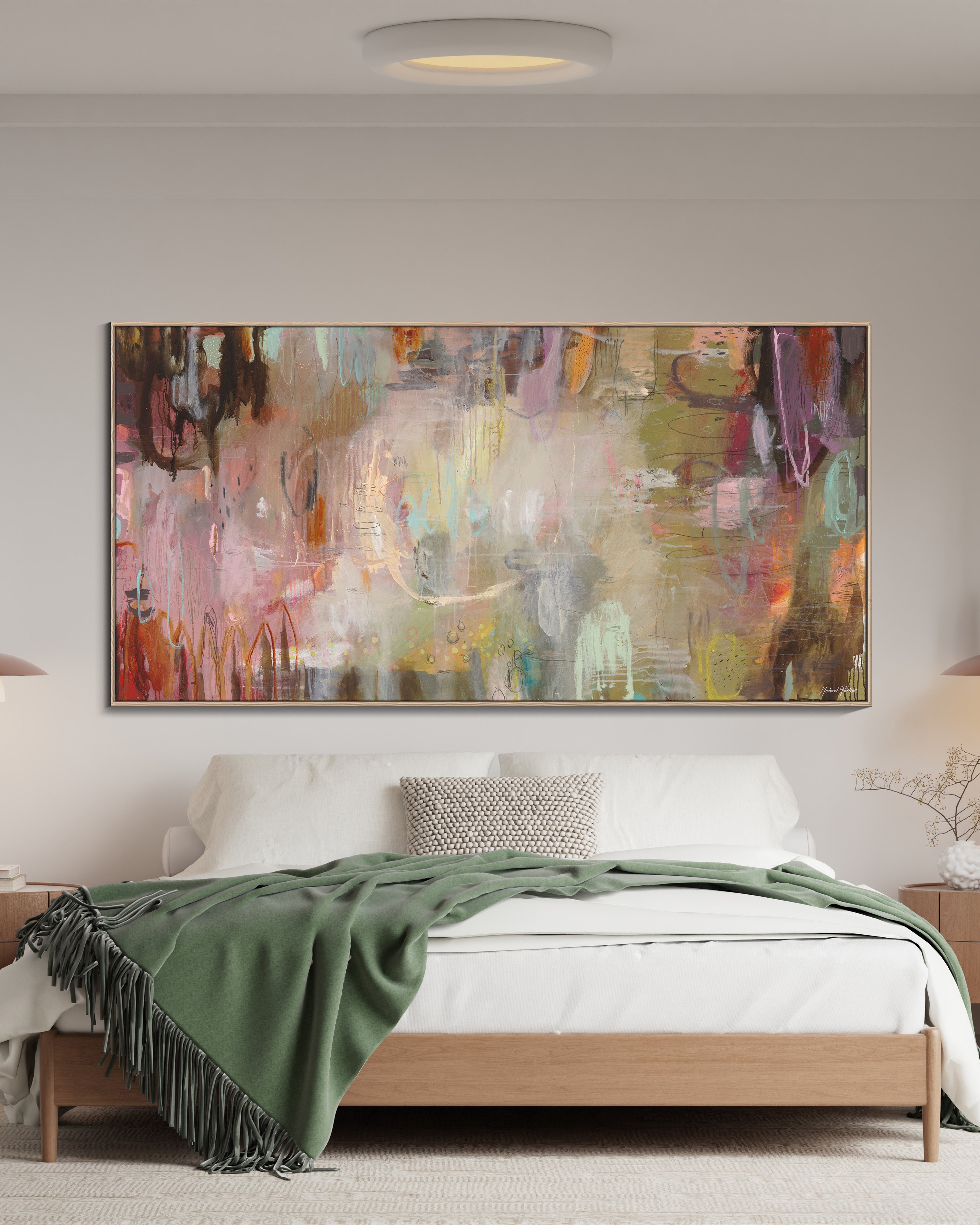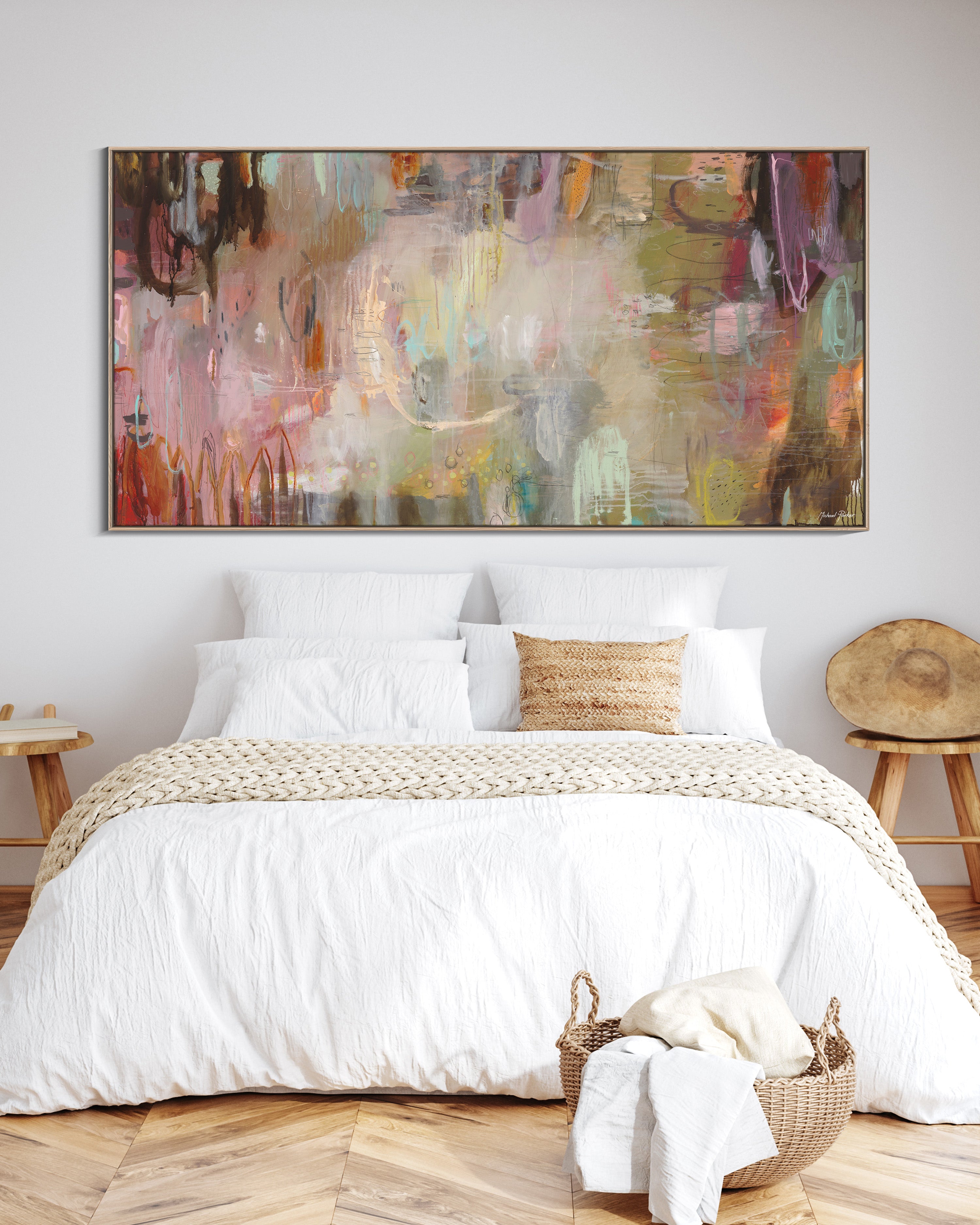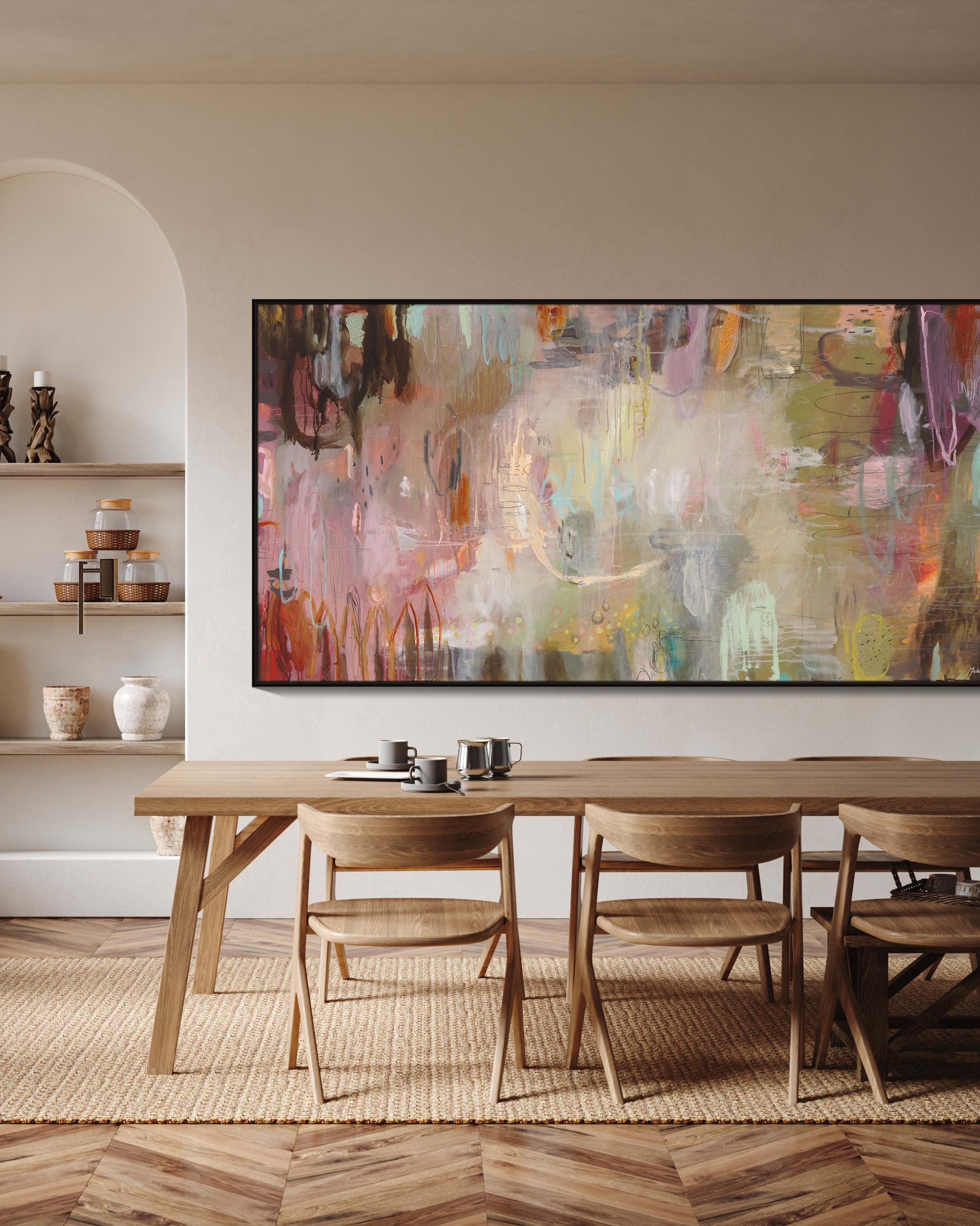 The artwork is stretched over 1.5" timber stretcher bars for a clean, modern finish. Comes ready to hang, complete with wire installed on the back.